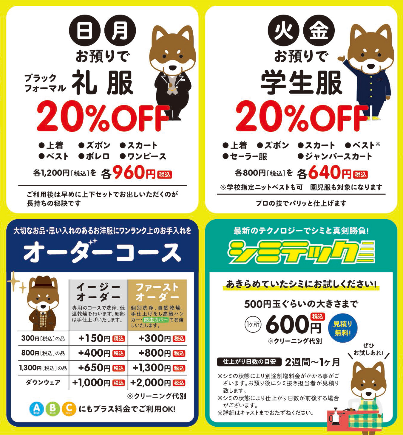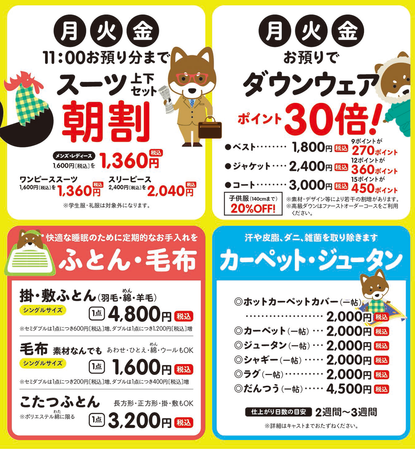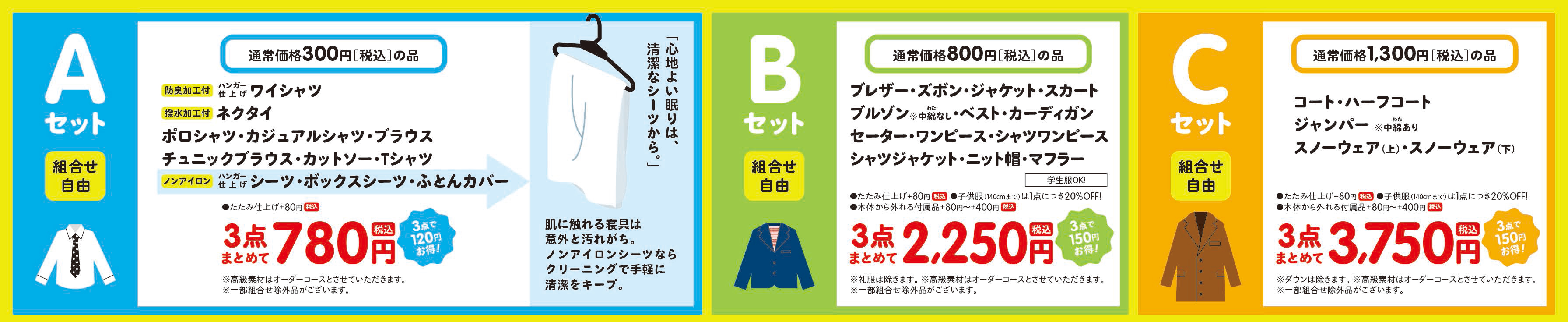 ※20255年9月1日より、クリーニング料金の一部を改定させて頂きました。